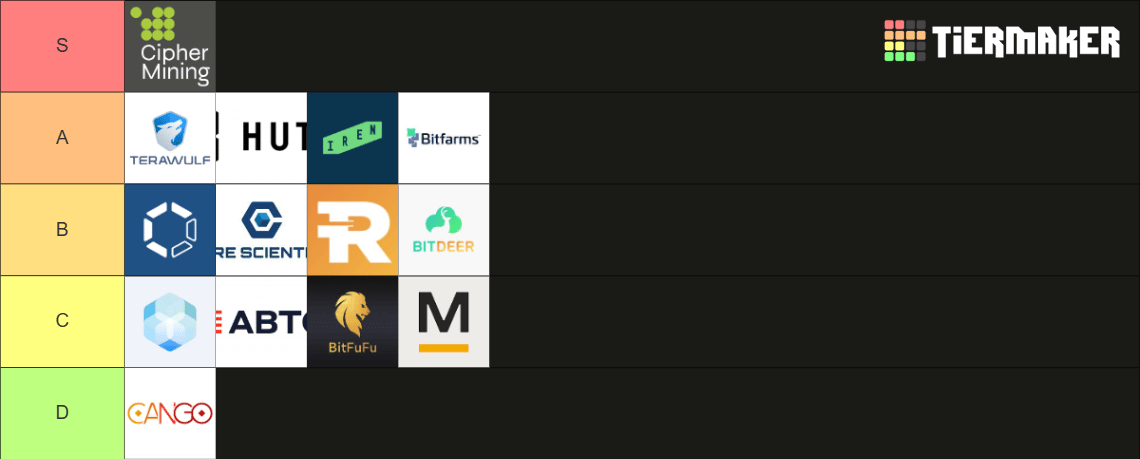 From here, it was pretty easy to decide which miners would be at the top of the rankings, and which ones below.