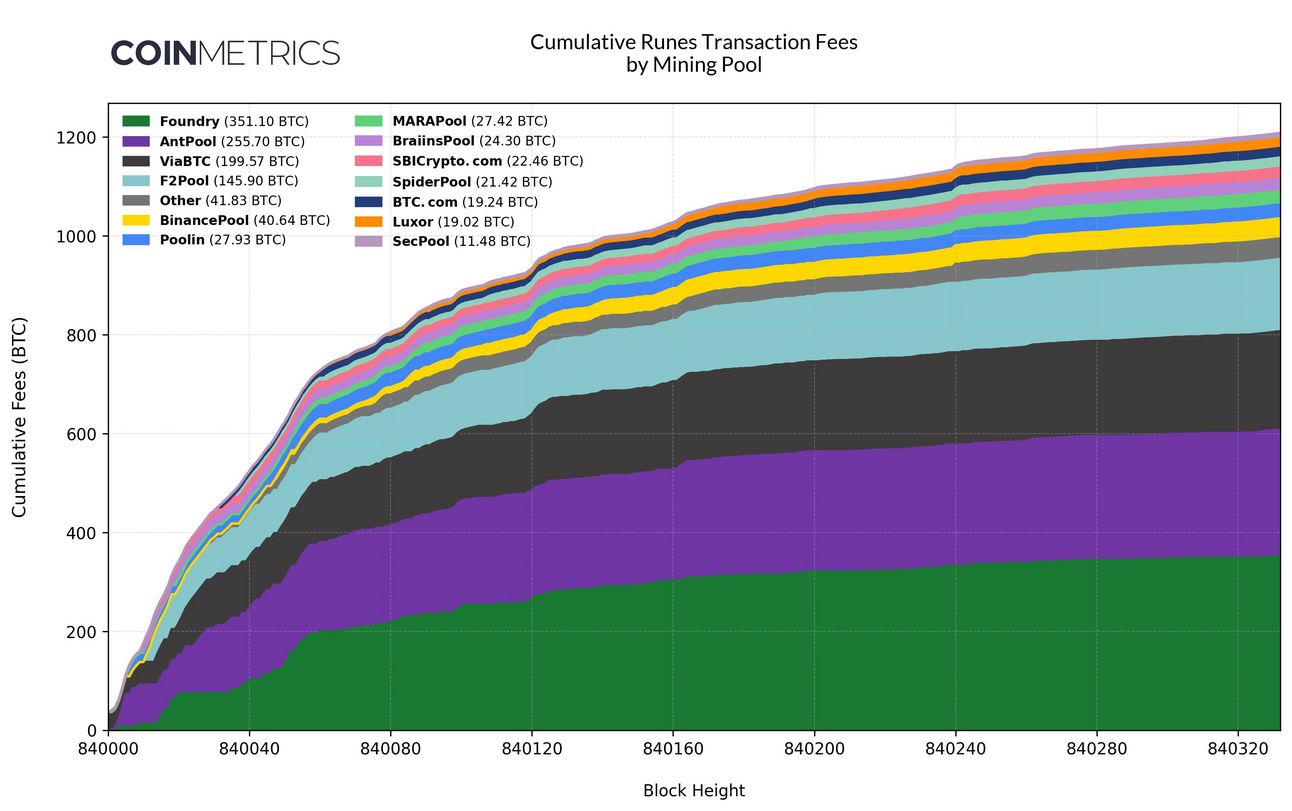 Overall, miners collected a bit over 1,200 BTC, or $80 million+ from the post-halving Runes Mania fees. In the ~320 blocks immediately following the halving, we saw mining profitability skyrocket upwards by 80% from $104/Ph/d to $182/Ph/d. (Hashprice is is a measure of miner profitability).