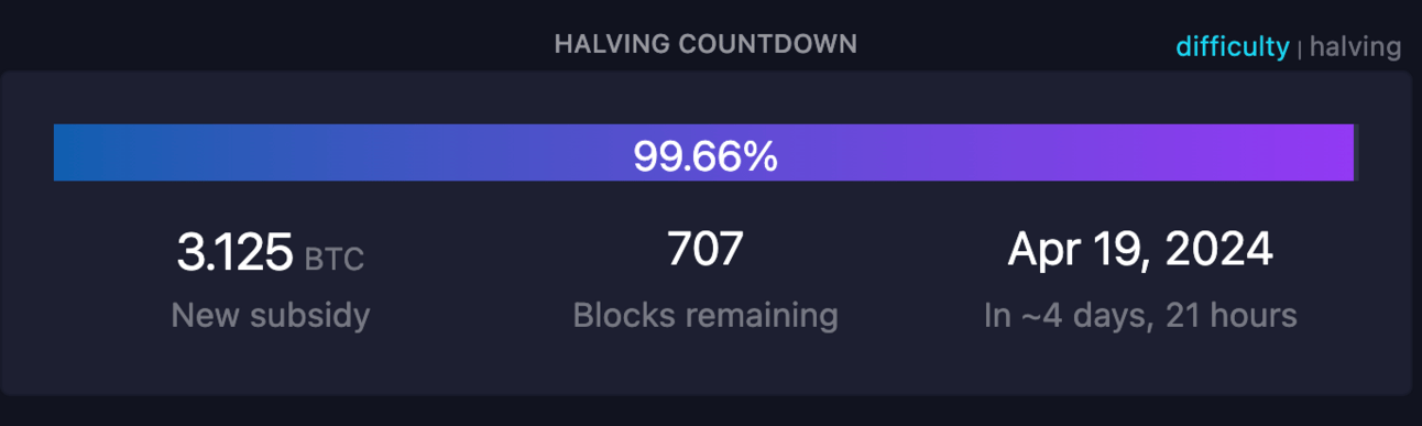 The halving is five days away! And with the rise of Ordinals, it’s fair to argue Block 840,000 could be the most anticipated fee event in Bitcoin’s history.
