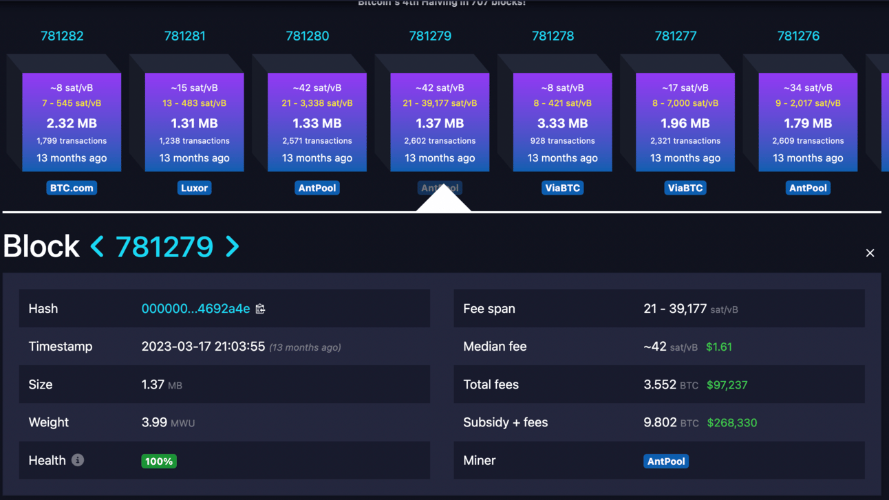 Both Antpool and ViaBTC blocks came in after Foundry hit an “orphan block,” in what some called a series of events highly suspicious. Others pointed out that it could have been misidentification of a normal orphaned block. Either way, Antpool got juicy fees from the auction block!