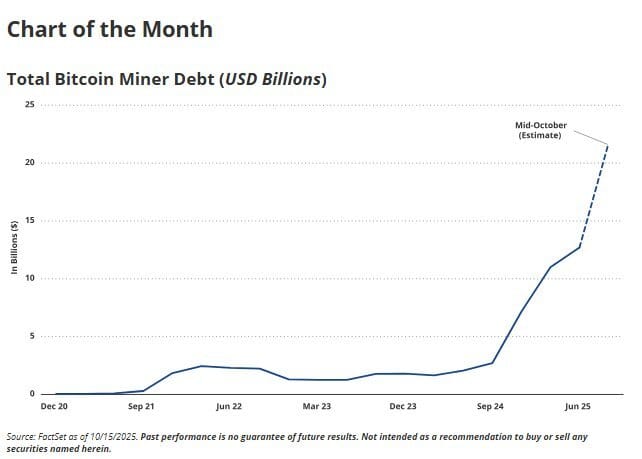 Per VanEck shared by Mathew Sigel, bitcoin miners have a record $20+ billion in outstanding debt as of October 15, 2025. Most of this debt comes in the form of convertible notes raised for AI/HPC pivots.