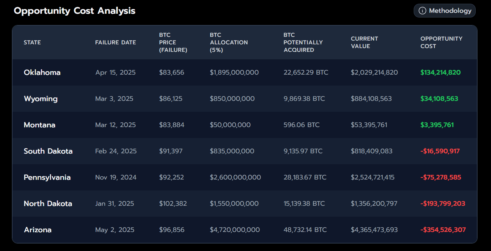 Here’s a helpful dashboard that simulates how much each state would have made or lost on their Bitcoin purchase, had they passed an SBR at the time of voting.